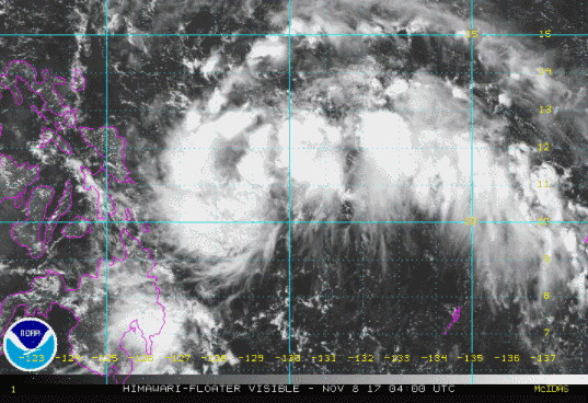 11月8日11時40分,葵花-8號衛(wèi)星監(jiān)測到的菲律賓東部洋面熱帶擾動99W