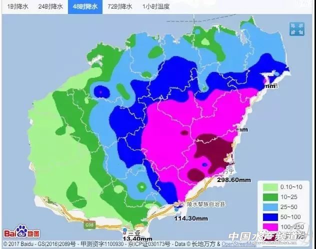 截至11月8日上午08時,海南島受熱帶擾動98W的影響,島內(nèi)中東部沿海地區(qū)過去48小時內(nèi)普降暴雨。其中,萬寧48小時降水接近300毫米。本周末,海南將仍有可能再受一個熱帶系統(tǒng)(熱帶擾動99W可能加強為今年第24號臺風(fēng))的襲擊,需關(guān)注它與冷空氣結(jié)合給島內(nèi)再次帶來強降水。