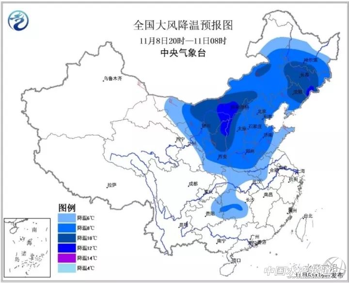 中央氣象臺11月8日18時發(fā)布寒潮藍色預(yù)警