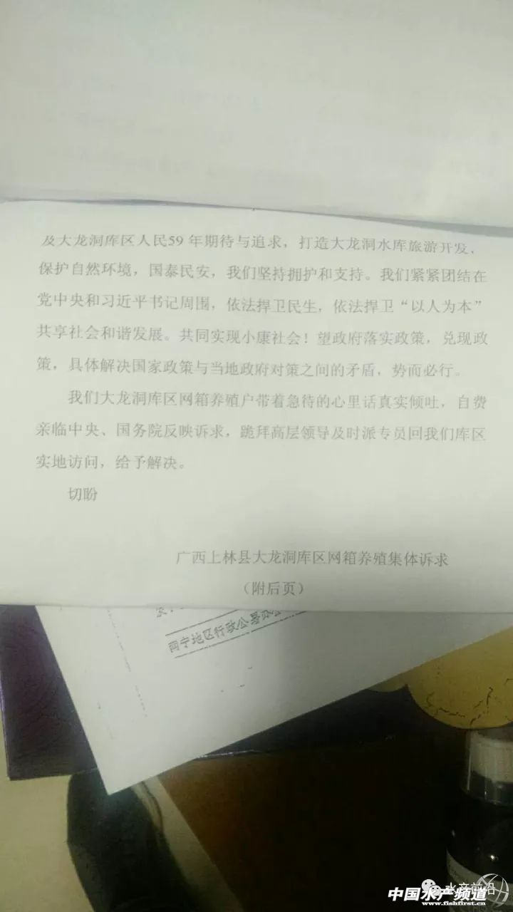 中國水產頻道獨家報道, 文/水產前沿 綜合報道 昨夜,廣西南寧市上林縣農商會會長潘健章(以下簡稱“潘會長”)致電筆者尋求協助,表示上林縣有八百多萬斤不同規格的網箱養殖淡水魚急需處理,原因是政府將于2017年11月8日起,預計一個月內將對該縣非法養魚網箱強制拆除。 據潘會長介紹,大龍湖屬于風景區,同時屬于飲用水源,屬政府規定的禁養區。近年來不斷有養戶在該區域進行非法養殖,對大龍湖風景區水質及飲用水源造成一定程度的污染。 潘會長還向筆者反映,關于網箱拆除的通告,上林縣人民政府等有關部門已向當地養殖戶發出過多次。2017年4月28日發布了《上林縣人民政府關于對大龍湖景區進行綜合整治的通告》,限各網箱養魚戶于2017年5月15日前自行處理養殖魚類并拆除養魚網箱;上林縣農林水利局2017年9月26日根據《中華人民共和國漁業法》第四十條第二款的規定,做出了“限期于15日內自行拆除養殖設施”的行政決定,并于2017年11月2日根據《中華人民共和國行政強制法》第三十五條的規定,向各網箱養魚戶發出強制拆除前催告書,限各網箱養魚戶三日內自覺履行上述行政決定;2017年11月7日,上林縣人民政府依據《中華人民共和國行政強制法》第四十四條的規定發布《上林縣人民政府關于強制拆除大龍湖景區養魚網箱的通告》,通告表示將于2017年11月8日起組織有關部門對非法養魚網箱執行強制拆除。 上林縣人民政府關于強制拆除大龍湖景區養魚網箱的通告 1979年,該水庫允許漁業生產的文件 2017年8月21日,該地區5名養戶自費去北京上訪的文件 2017年9月26日,上林縣農林水利局對該地某養殖戶做出的處罰決定文件 “今天是該地區網箱強制拆除的第一天,參與拆除的政府相關工作人員超過百人,并攜帶警犬、配有救護車等。”據上林縣某養殖戶反映,當初因修建水庫,自家的農田被淹,多年來只能靠漁業為生。如今網箱拆除,生計難以維持。他們在今年8月21日曾組團到北京上訪,卻被告知不能越級上訪,訴求被返回本地相關部門處理。 潘會長告訴筆者,政府近日要求上林縣商會積極提供渠道,協助養殖戶賣魚。養殖戶除了自己聯系魚中,也可以通過上林縣商會的渠道,盡量按照市場價格從優賣魚。 以下為上林縣急需清理的網箱養殖品種及數量清單,希望廣大有需要的朋友盡快聯系潘健明報價和收購,電話:13924846322 【關鍵字】:清拆 網箱 水產養殖 |