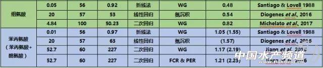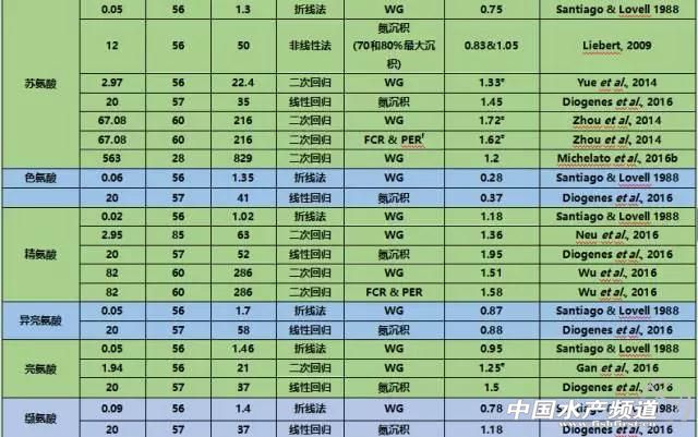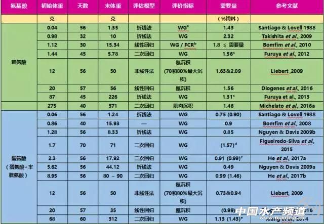 中國水產頻道獨家報道, 贏創德固賽(中國)投資有限公司動物營養業務線 肖緒誠 高俊 羅非魚自身不能合成其生長所需的10種必須氨基酸(EAA),必須通過攝取食物補充以滿足其生長發育的需要。目前,氨基酸的需要量研究通常選用劑量法來評估。但近年來,飼料營養素稀釋法和缺乏法也被接受并應用于營養素需要量的研究中。本文就羅非魚的必需氨基酸相關研究進行概述,以期對實際生產配方的制作起到指導作用。文中氨基酸需要量數據如無特別標注,數值均為總氨基酸需要量(%飼料)。 蛋氨酸和半胱氨酸 在羅非魚飼料中,蛋氨酸通常為第一限制性氨基酸,在以豆粕為主要蛋白源的飼料中蛋氨酸缺乏最為嚴重。羅非魚蛋氨酸需要量研究可以追溯到上世紀八十年代。Jackson和Capper(1982)研究發現,初始體重為1.7g的莫桑比克羅非魚幼魚(Sarotherodon mossambicus)的蛋氨酸需要量≤0.53%(含0.74%半胱氨酸),Santiago和Lovell(1988)報道,當飼料中半胱氨酸含量為0.15%時,尼羅羅非魚仔魚(62mg初始體重)的蛋氨酸需要量為0.75%。近年來,關于羅非魚幼魚總含硫氨基酸需要量(%飼料量)研究結果也有報道,例如:0.49%蛋氨酸(Nguyen和Davis,2009a)和0.85%總含硫氨基酸(Nguyen和Davis,2009b),0.91%蛋氨酸(0.10%半胱氨酸,干物質基礎)(He等,2017)和0.99%總含硫氨基酸(Diogenes等,2016)。但也有許多研究表明,羅非魚對蛋氨酸的需要量可能更高。例如:Xiang等(2014)報道68g尼羅羅非魚飼料中總含硫氨基酸為1.43-1.46%(干物質基礎)。贏創-塔克辛大學聯合實驗的結果表明,飼喂含1.25-1.57%總含硫氨基酸飼料的雜交羅非魚(O.nilotics×O.mossambicus)體增重和體蛋白沉積最高(Figueiredo-Silva等,2015)。He等(2017b)也研究發現,飼喂0.99%蛋氨酸(含0.47%半胱氨酸)飼料的尼羅羅非魚生長最好。 以上研究結果都是由劑量法獲得的。Liebert(2009)選用飼料稀釋法確定羅非魚的蛋氨酸需要量,其研究表明,飼喂0.73%和0.94%蛋氨酸飼料的羅非魚幼魚可達到70%和80%理論最大氮沉積率。同時,為了達到上述實驗預期,其飼料賴氨酸含量至少為2%(Xiang等,2014;Figueiredo-Silva等,2015;He等,2017a;He等,2017b)。然而也有研究指出,僅含1.50-1.67%的賴氨酸飼料即可滿足上述研究中羅非魚幼魚的生長需要。但近年來的許多研究發現,飼料中1.50-1.67%的賴氨酸并不能滿足羅非魚幼魚的生長所需(例如:2.32%,Takishata等,2009;≥1.8%,Bomfim等,2010),同時還會低估蛋氨酸的實際需要量。He等(2017b)研究發現,羅非魚飼料中的能量含量不足也會低估其必需氨基酸的需要量。其結果表明,當飼料中的能值從10.9MJ/kg升高至12.4MJ/kg時,尼羅羅非魚的蛋氨酸需要量(半胱氨酸0.47%)會從0.73%升高至0.99%。 近年來許多研究結果明確指出,在評估營養元素的需要量實驗中,其實驗飼料的必需營養素(包括氨基酸)是否平衡及飼料的能量水平都會直接影響最后的實驗結果。綜上,在滿足賴氨酸需要量(2%)時,羅非魚早期生長階段的總含硫氨基酸需要量為1.4-1.6%。 賴氨酸 在關于羅非魚必需氨基酸的研究中,賴氨酸的研究最為廣泛。早在1982年,Jackson和Capper就發表過關于羅非魚賴氨酸需要量的研究報告。該研究表明,莫桑比克羅非魚幼魚的最適飼料賴氨酸含量為1.62%。Santiago和Lovell(1988)報道的尼羅羅非魚仔魚(41mg初始體重)最適飼料賴氨酸含量為1.43%。Takishita等(2009)研究發現,飼喂含賴氨酸2.32%飼料(可消化賴氨酸含量為2.17%)的羅非魚幼魚(0.98g初始體重)增重率最高。然而,該研究的結果顯著高于以往的研究數據。在之后的研究中發現,羅非魚幼魚(1.12g初始體重)(Bomfim等,2010)的體增重隨飼料賴氨酸含量(1.05-1.80%)的升高而成線性增加關系,最適飼料賴氨酸含量最少為1.80%(可消化賴氨酸含量至少為1.7%)。但Furuya等(2012)使用二次回歸方程計算得出,羅非魚幼魚(1.44g初始體重)最適飼料可消化賴氨酸含量僅為1.56%即可達到其最佳增重率。然而在該研究中,羅非魚的特定生長率(SGR)僅為0.10g/天,顯著低于其他研究報道中魚體的特定生長率(0.38和0.47g/天)(Takishita等,2009;Bomfim等,2010),盡管這三個研究均選用初始體重相似的羅非魚幼魚(1g左右)作為研究對象。 以上研究結果都是由劑量法獲得的,而Liebert(2009)和Diogenes等(2016)選用其它方法評估羅非魚賴氨酸的飼料需要量。Liebert(2009)研究發現,評估尼羅羅非魚幼魚(12g初始體重)的賴氨酸需要量受很多因素的影響(魚體的生長潛力,氨基酸的利用率和攝食率等)。研究者發現,在該實驗條件的魚體利用率下,飼喂含賴氨酸1.63%和2.09%飼料的羅非魚即可達到70%和80%理論最大氮沉積率。Diogenes等(2016)采用營養物質缺乏法研究表明,尼羅羅非魚幼魚(20g初始體重)的賴氨酸需要量僅為1.56%。由于該研究的實驗配方中其它必需氨基酸含量均低于羅非魚的最適需要量,因此羅非魚的實際賴氨酸需要量可能被低估了。關于羅非魚成魚賴氨酸需要量的研究鮮有報道。Michelato等(2016a)指出尼羅羅非魚(275g)最適飼料賴氨酸含量為1.46%。 綜上,盡管前文所述研究結果存在差異,但所報道的最適飼料賴氨酸含量(1.56-2.32%)均高于Santiago和Lovell(1988)報道的最適羅非魚仔魚飼料賴氨酸含量(1.43%)。這種差異可能是由于近年來研究的羅非魚多為改良品系和全雄品系,這些品系相對于傳統品系具有較高的生長速度。 蘇氨酸 除蛋氨酸和賴氨酸之外,魚類蘇氨酸的研究也有大量研究報道。蘇氨酸是機體蛋白質合成所需的必需氨基酸,它也在其它許多生理功能中起著重要作用,例