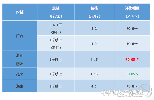 中國水產頻道獨家報道, 文/粵海飼料集團、水產前沿 彭曉君 羅非魚 羅非魚行情整體6兩以上規格3.1-3.3元/斤,1斤以上規格4.1元/斤左右;行情有下降在0.05-0.1元/斤的價格波動。 天氣慢慢變涼,市場達規格魚加快岀塘上市,加工廠訂單不升價收,魚價波動走低有0.05-0.1元/斤的價格。 未來走勢:粵西隨著溫度的降低,投喂開始正常,上市規格魚增多,后續大量的成魚會集中上市,所以價格會緩跌;部分用戶中上旬魚病反復,也加快達規格魚上市拉降魚價;海南4.1元/斤(送到工廠價并且至少半個月以上才有款回)。 廣西區域:隨著晝夜溫差拉大,天氣漸冷,存塘規格羅非基本上已經出完,價格持續低迷難以有起色。走市場鮮活大規格羅非價格也不理想,1.3斤起4.3元/斤。 【關鍵字】:羅非魚 塘頭價 水產養殖 |