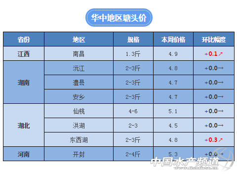 由于湖北和廣西等地又有大批網箱拆除,沖擊魚價導致了前段時間的價格下滑,但是由于總量也就幾百萬斤,對于各大批發市場的流通量來講很快也就被消化完,所以最近湖北部分地區的草魚價格開始出現反彈。目前武漢東西湖地區2-3斤草魚報價4.8元/斤,相比上周上漲了3毛錢。江西地區目前的統貨(1.8斤左右)報價4.6-4.8元/斤,標貨(1.3-1.5斤)報價4.9元/斤,繼續上漲1毛。而湖南地區目前的行情沒有出現太大波動,據業內人是表示短期內可能還難以上漲。