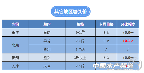 重慶地區本周價格波動不大,目前小規格草魚供應充足,價格還是比較低迷,大規格草魚目前的消費情況來看需求量沒有太大變化,外地的魚暫時也還不多,預計在接下來幾波冷空過后會有所增加。由于周邊養殖戶賣魚接近尾聲,部分養殖戶在等行情,賣魚速度減慢。北方地區本周價格有小幅升溫,據了解近期當地清坑的比較多,目前2.5斤左右的塘頭價5.2元/斤,相比上周漲了0.1元。