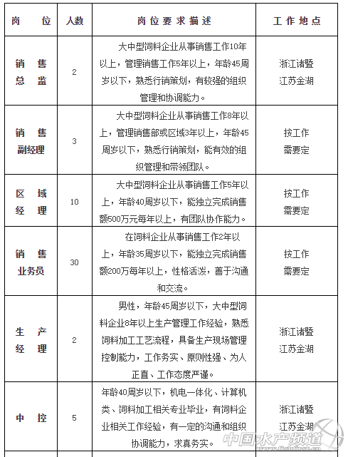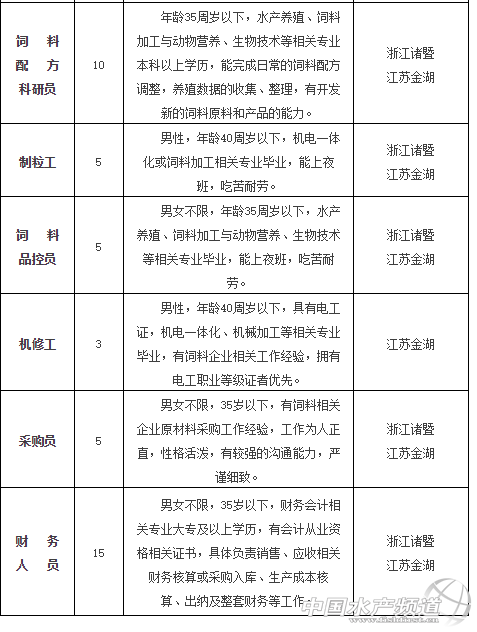 中國(guó)水產(chǎn)頻道獨(dú)家報(bào)道, 公司簡(jiǎn)介 浙江金大地生物科技股份有限公司(已在新三板掛牌)農(nóng)業(yè)產(chǎn)業(yè)化國(guó)家重點(diǎn)龍頭企業(yè)—浙江金大地農(nóng)業(yè)集團(tuán)有限公司下屬控股子公司,公司總部位于浙江省諸暨市,下轄全資子公司江蘇金大地飼料有限公司,位于江蘇省金湖縣。本公司是一家集研發(fā)、生產(chǎn)、銷售于一體的特種水產(chǎn)飼料生產(chǎn)企業(yè)。 公司主打產(chǎn)品為甲魚、鰻魚粉狀飼料和甲魚、烏龜、青魚、黃顙魚、大黃魚、蝦、蟹、四大家魚等膨化配合飼料,其中甲魚飼料被評(píng)為“浙江省名牌產(chǎn)品”,客戶覆蓋全國(guó)15余個(gè)省市區(qū)。 股份公司下設(shè)飼料研究所1個(gè);掌握配合飼料核心技術(shù)的現(xiàn)代化預(yù)混料車間1個(gè);年產(chǎn)3萬噸電腦自動(dòng)配料甲魚和鰻魚粉狀飼料生產(chǎn)線1條;年產(chǎn)5萬噸進(jìn)口全自動(dòng)電腦配料膨化配合飼料生產(chǎn)線2條,工藝水平居國(guó)際領(lǐng)先水平。江蘇公司以蝦蟹魚等名貴品種配合飼料為主,設(shè)時(shí)產(chǎn)10噸的沉性膨化飼料生線1條、時(shí)產(chǎn)3噸的蝦配合飼料生產(chǎn)線2條和時(shí)產(chǎn)10噸的魚蟹配合飼料生產(chǎn)線1條。 公司進(jìn)入平穩(wěn)快速發(fā)展期,現(xiàn)急需招聘以下崗位人才: 福利待遇 基本工資+績(jī)效工資+業(yè)務(wù)提成+五險(xiǎn)+年終獎(jiǎng)勵(lì) 成長(zhǎng)晉升 基層員工在職培訓(xùn)→儲(chǔ)備干部培養(yǎng)→中層鍛煉培養(yǎng)→高管鍛煉培養(yǎng) 聯(lián)系我們 公司地址:浙江省諸暨市暨陽(yáng)街道城東路270號(hào) 江蘇省金湖縣經(jīng)濟(jì)開發(fā)區(qū)寧淮路19號(hào) 聯(lián)系電話:王經(jīng)理:18888768885 邱女士:15988283189 座機(jī):0575-89097955 0575-89097933 簡(jiǎn)歷投遞:zjjddhr 126.com 【關(guān)鍵字】:水產(chǎn)業(yè) 招聘 水產(chǎn)養(yǎng)殖 |