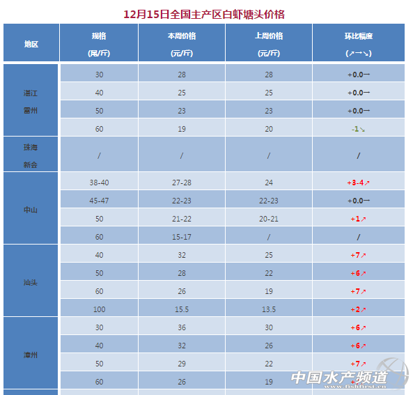 中國水產頻道獨家報道, 文/粵海飼料集團、中國水產頻道 彭曉君 各產區白對蝦一周價格分析 湛江、海口:本周蝦價基本持平,存塘蝦少,冬棚蝦開始,后續市場需求強勁,預計穩中略漲。 珠海新會:存塘蝦量少,該區域暫停報價。冬棚養殖放苗近8成,最近發現15~25天的苗黑頭蝦相對常見,多為吃底雜物多,用過硫改底有見效果,且普遍水色清瘦。 廣西北海:該區域基本進入養殖尾聲,存塘蝦少,暫停報價。廣西冬棚養殖主要集中北海區域,欽防較少,計劃養冬棚的基本投苗完畢(少部分之前投苗不成功的可能會在冷空氣過后還會補苗)。今年蓋棚蓋膜比較遲,近期風大蓋不了膜,大部分計劃養冬棚的都搭好了架(或去年已留有棚架)。由于今年冷空氣來得比較突然,冷空氣來之前很多養殖戶沒蓋好膜,待冷空氣來后搭棚隊緊張人手不足來不及搭棚,加上風大蓋不了膜等原因,造成部分計劃蓋棚養冬蝦的養戶陷入被動。估計這場冷空氣過后蝦直接損失不小,而且更為甚者間接損失更大,間接損失體現為打亂養殖戶的冬蝦計劃,對那些抱有會是“暖冬”看法期待不蓋棚一搏冬蝦的影響波及范圍甚廣。 中山:中山南朗38尾28元/斤,東升沙朗55尾18-19元/斤,中山南50尾22元/斤,60尾15元/斤,港口47尾22元/斤,容桂50尾22元/斤,東莞40尾27元/斤,海鷗島60尾17元/斤。中山南存塘量少,冬棚蝦小規格為主;東升沙朗大規格蝦基本出完,冬棚蝦規格較小;南朗大部分在月底至元旦前后出蝦;港口今年棚蝦相對較少。 汕頭:土塘存塘蝦規格主要在30-70尾/斤左右,40尾/斤以上大規格蝦少。土塘養殖進入冬季清塘季節,蝦塘主要剩余塘底蝦,蝦量少;本周蝦價大幅上漲,同比上周上漲5-7元/斤。 漳州:高位池蝦養殖無大規格存塘蝦;土塘存塘蝦少,隨著溫度下降,池塘存蝦量減少,出蝦量逐漸減少。本周蝦價上漲幅度較大,同比上周上漲5-7元/斤。 江蘇如東:南美白對蝦有價格發力態勢,存塘蝦加溫等價。 (部主產區外塘養殖結束,暫停報價。) 【關鍵字】:白蝦 塘頭價 水產養殖 |