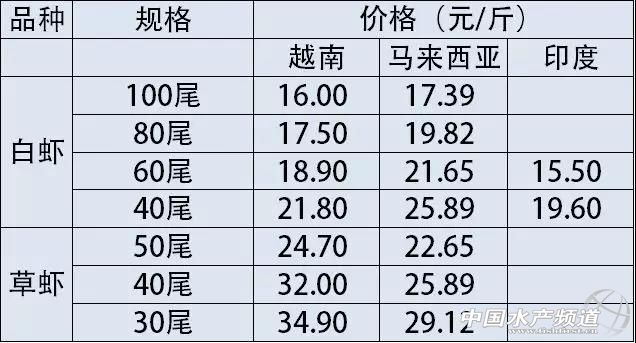 中國水產頻道獨家報道, 文/圖海鮮指南(seafood-guide)陳磊 注:以上產品為當地蝦類的塘頭收購價,匯率按2017年12月26日計算,1越南盾兌換0.0003人民幣 本周(12月20日-12月26日),越南白蝦的價格在連續三周保持上漲態勢之后,本周較為穩定。100尾的目前的價格為16元/斤,80尾的價格為17.5元/斤,60尾每斤的價格為18.9元/斤,40尾的價格為21.8元/斤,均價都沒有變化。相同的狀況還出現在馬來西亞,白蝦和草蝦的價格均沒有變化。 同時,印度地區的白蝦價格繼續保持上周的降幅,目前60尾規格的價格為15.5元/斤,40尾規格的價格為19.6元/斤,均價降幅為0.5元/斤左右,目前的價格已經為本周價格最低。 溫馨提示: 以上價格行情由“海鮮指南”統計整理發布,僅供參考。市場有風險,交易需謹慎。 |