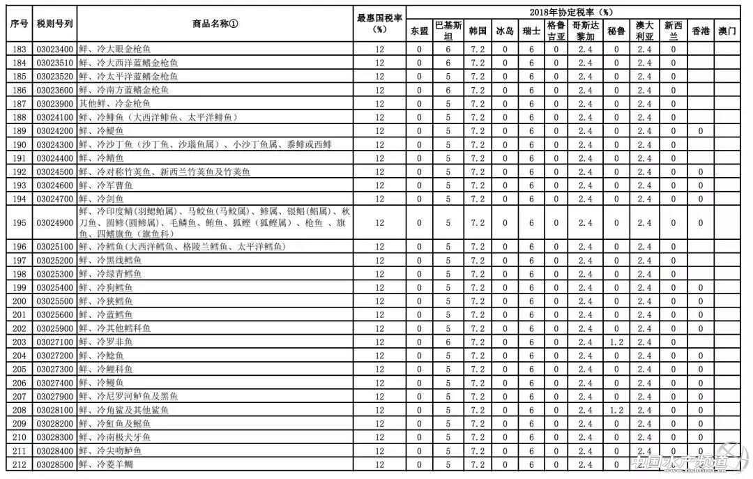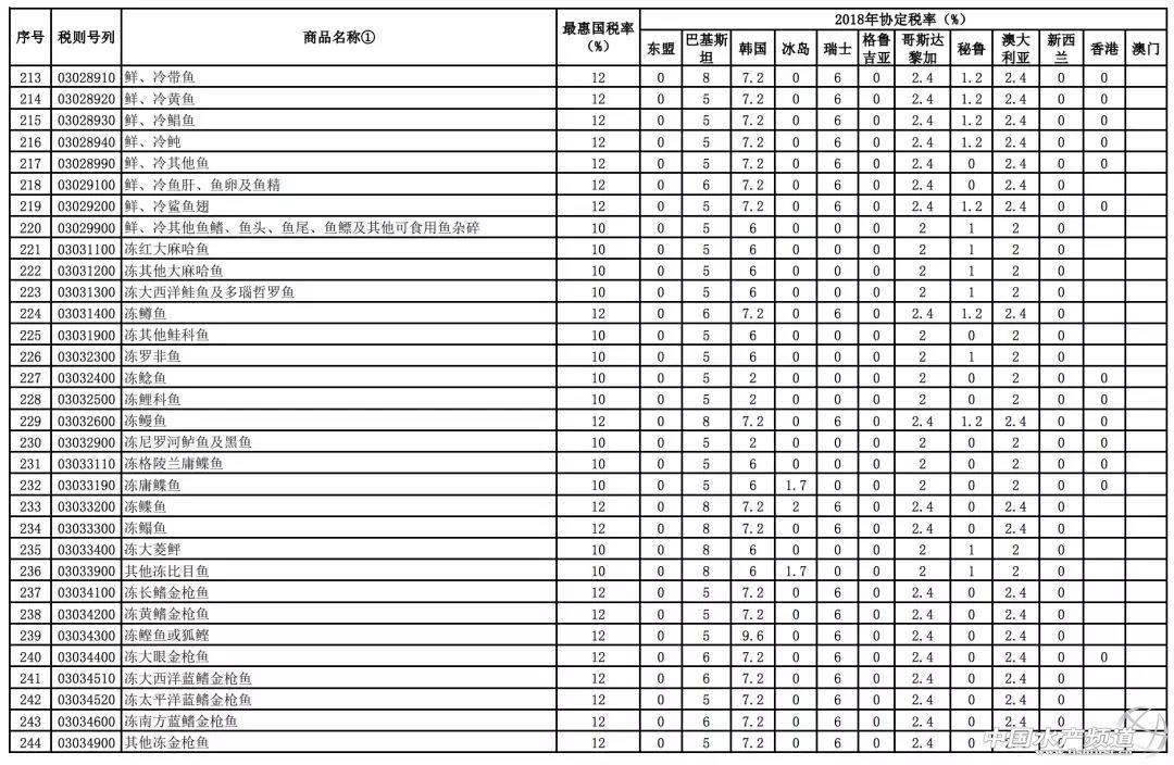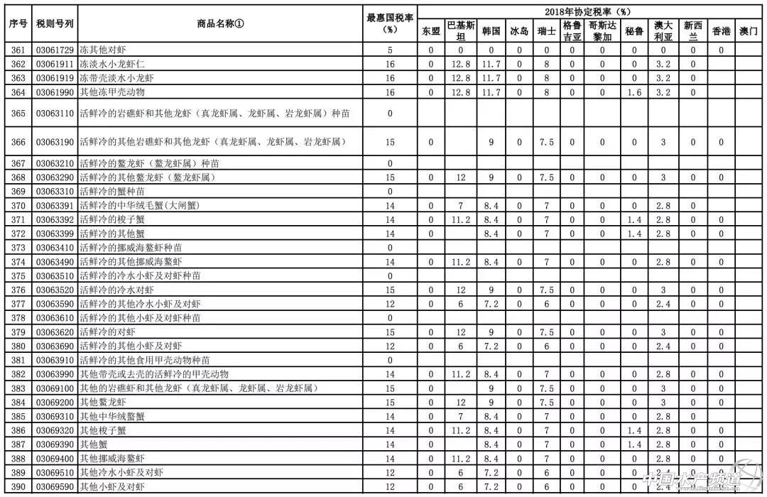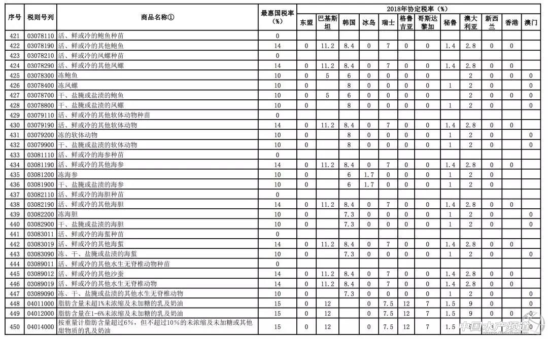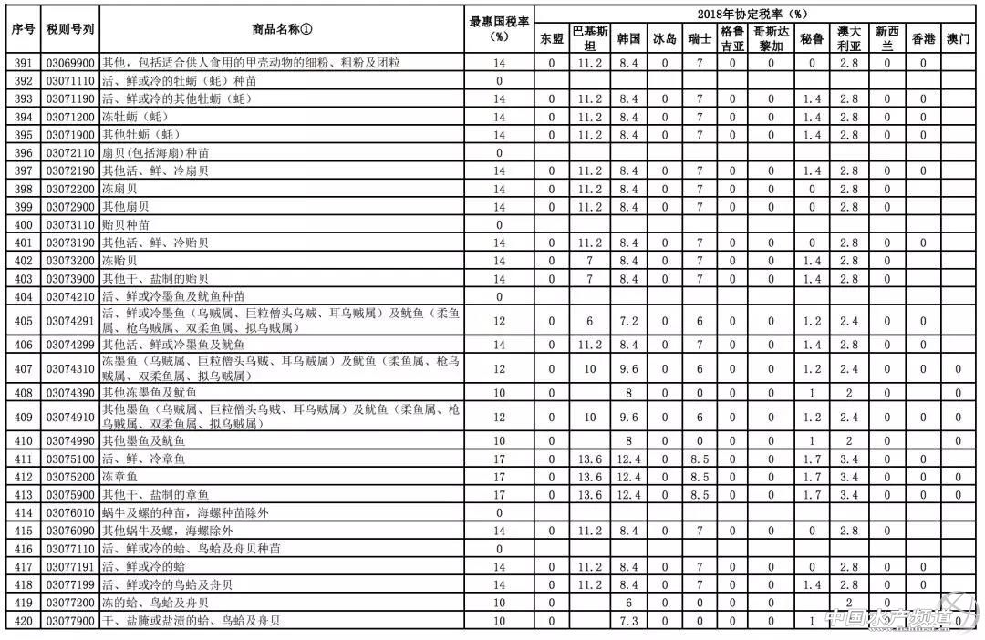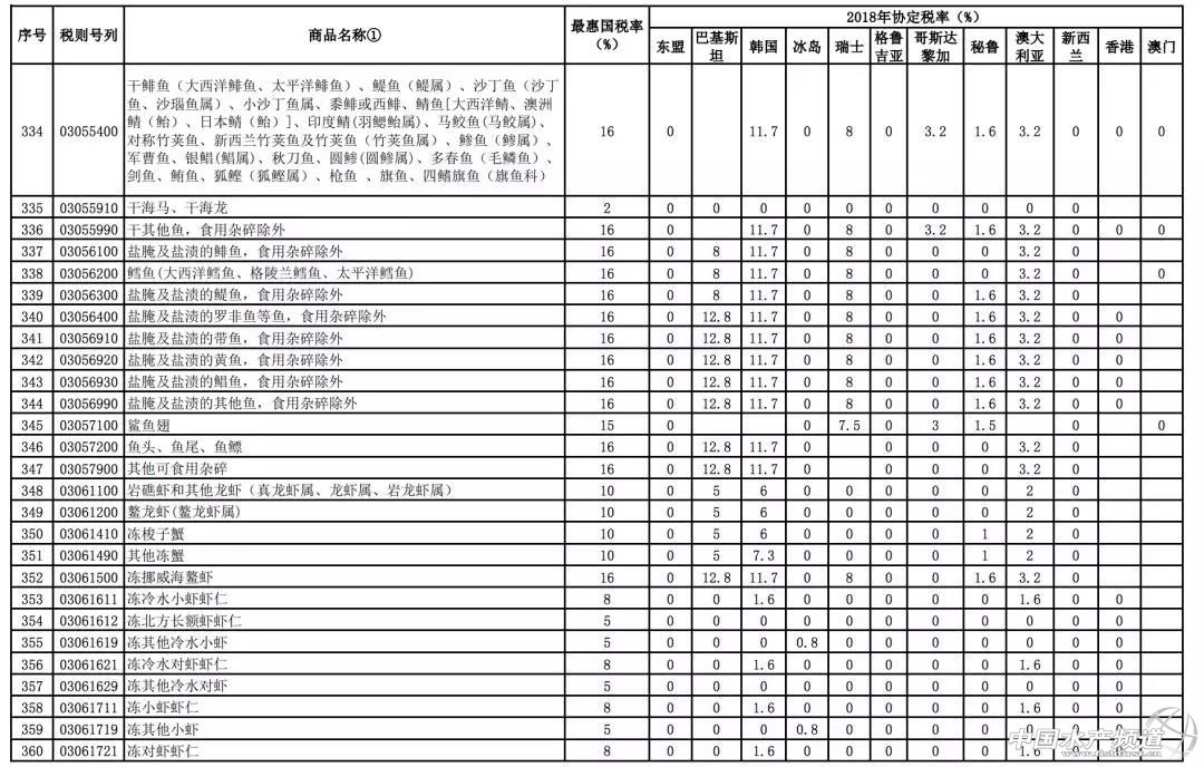 文/ 海鮮指南(seafood-guide) 沈基文 中國水產頻道原創報道,12月27日,海關總署統一指揮北京、南京、福州、南寧、昆明、石家莊、上海、青島、廣州、湛江、?诘11個海關,在地方公安、邊防、海警等部門的大力支持配合下,共同開展“4.12”打擊凍水產品走私集中行動,一舉搗毀涉案走私團伙8個,查證涉案凍水產品3.7萬噸,案值初估人民幣19億元。 一方面是海關總署對走私行為的嚴厲打擊,另一方面,關稅的降低也從另一個層面引導著海產業正在向規范進口貿易環境發展。 近日,財政部網站發布了《國務院關稅稅則委員會關于2018年關稅調整方案的通知》,通知公布了2018年關稅調整方案。 2018年關稅調整方案提到,關于進口海鮮的部分調整,中國與東盟、巴基斯坦、韓國、冰島、澳大利亞、新西蘭等國的進口關稅在原最惠國稅率基礎上于2018年1月1日起進一步降低甚至繼續零關稅,涉及鮮、凍以及干海鮮等品類列表長達10頁內容之多。 2018年1月1日起,我國調整部分進出口關稅 根據我國與有關國家或地區簽署的貿易或關稅優惠協定,對有關國家或地區實施協定稅率:中國與格魯吉亞自貿協定項下的部分產品開始實施協定稅率;中國與東盟、巴基斯坦、韓國、冰島、瑞士、哥斯達黎加、秘魯、澳大利亞、新西蘭的自貿協定,以及內地分別與香港和澳門更緊密經貿安排(CEPA)項下部分商品的協定稅率進一步降低; 中國與智利、新加坡的自貿協定、亞太貿易協定以及海峽兩岸經濟合作框架協議(ECFA)項下的商品繼續實施協定稅率,商品范圍和稅率水平均維持不變;對有關最不發達國家繼續實施特惠稅率,商品范圍和稅率水平維持不變。 三文魚、金槍魚、龍蝦、鱈魚、貽貝等進口海鮮關稅繼續下降,甚至零關稅 進一步降低關稅列表顯示,沿著“一帶一路”戰略線路上的東盟幾乎全零關稅。2017年上半年和我國新疆與巴基斯坦開啟的海鮮進口通道也將在2018年迎向進一步降低關稅的利好時期。 從地區來看,除了“一帶一路”所覆蓋的東盟等地享受2018年協定稅率零關稅,在進一步降水的進口商品協定稅率表中,冰島、瑞士、格魯吉亞、秘魯、澳大利亞、新西蘭、香港、澳門等國家或地區2018年協定稅率下降幅度較大甚至繼續零關稅。 此前我國進口澳大利亞鮮、冷大西洋鮭魚的2018年協定稅率為2%(原最惠國稅率為10%),這讓原本在市場就占有價格優勢的澳魚2018年優勢更加明顯;不僅是鮮、冷大西洋鮭,還有市場上常見的鮮、冷、凍金槍魚類,2018年協定稅率調整為2.4%(原最惠國稅率為12%)。 巖礁蝦和其他龍蝦(真龍蝦屬、龍蝦屬、巖龍蝦屬)、鰲龍蝦(鰲龍蝦屬)產品出口國里,2018年澳大利亞協定稅率為2%(原最惠國稅率為10%),新西蘭零關稅。 鱈魚類(泛指鱈魚科)出口國家里,韓國、瑞士、冰島2018年協定稅率分別是7.2%、6%和零關稅(原最惠國稅率為12%)。 貽貝(活、鮮、冷、凍貽貝)出口國家里,新西蘭2018年零關稅。 10頁海產品進口關稅調整詳細對比列表 在進一步降稅的進口商品協定稅率表里,進口海鮮(包含鮮、凍和干貨)的品類更是多達10頁內容,詳細如下: *如需要全部名單,請點擊閱讀原文獲取。 |