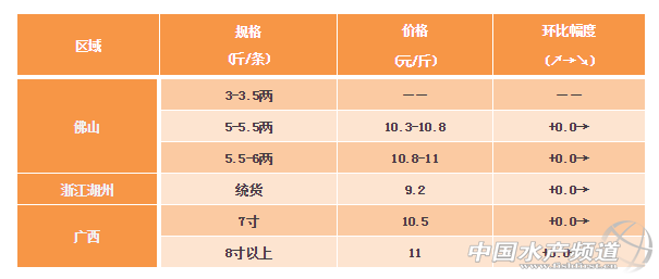 中國(guó)水產(chǎn)頻道獨(dú)家報(bào)道, 文/粵海飼料集團(tuán)、水產(chǎn)前沿 彭曉君 黃顙魚 佛山區(qū)域:西樵舊魚存塘量不多,新魚暫時(shí)未出。舊魚存塘量少,受價(jià)格影響,舊魚出魚較少。水溫低,吃料較少,病害腸炎,出血。 浙江湖州地區(qū):交易量少,價(jià)格保持穩(wěn)定。 【關(guān)鍵字】:黃顙魚 價(jià)格 水產(chǎn)養(yǎng)殖 |