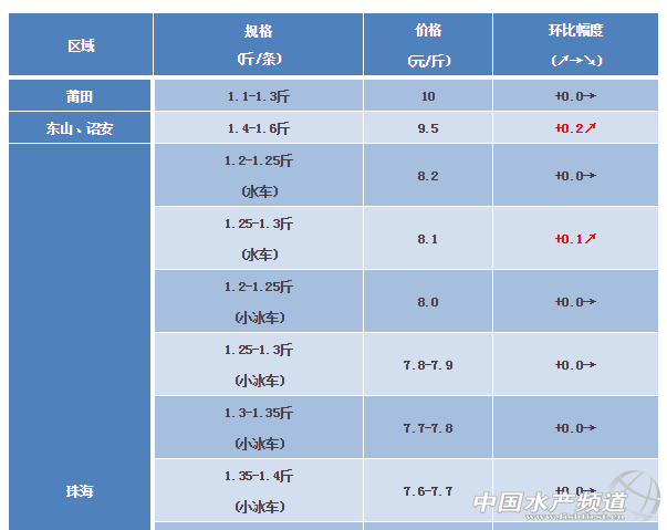 中國(guó)水產(chǎn)頻道獨(dú)家報(bào)道, 文/粵海飼料集團(tuán)、水產(chǎn)前沿 彭曉君 海鱸 福建莆田、東山、詔安區(qū)域:鱸魚(yú)養(yǎng)殖目前均已達(dá)到上市規(guī)格,隨著鱸魚(yú)成魚(yú)量的增加,市場(chǎng)價(jià)格低迷,養(yǎng)戶(hù)仍處于觀望中,出魚(yú)量少。 廣東珠海區(qū)域:(1)春節(jié)魚(yú)臨近,大規(guī)格(1.9斤~2.1斤)鱸魚(yú)價(jià)格回暖,上層消費(fèi)市場(chǎng)的刺激,回暖將會(huì)持續(xù);(2)流通方式中深加工要求1.2~1.4斤規(guī)格為多,所以持續(xù)的銷(xiāo)量會(huì)刺激價(jià)格穩(wěn)步上揚(yáng),加上水車(chē)銷(xiāo)量的問(wèn)題,級(jí)魚(yú)價(jià)格逐步穩(wěn)定上揚(yáng);(3)隨天氣變化,過(guò)冬魚(yú)的風(fēng)險(xiǎn)增加,部分客戶(hù)選擇性出魚(yú)。 病害:成品魚(yú):冬季溫度波動(dòng)幅度大,水霉病開(kāi)始泛濫,水溫合適真菌繁殖,存在交叉感染情況,建議:粵海金碘+五蓓子消毒預(yù)防,有發(fā)病魚(yú)塘可連續(xù)用3~5次。 【關(guān)鍵字】:海鱸 塘頭價(jià) 水產(chǎn)養(yǎng)殖 |