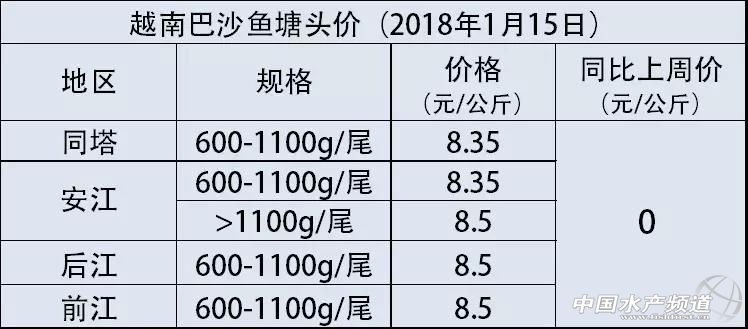 中國(guó)水產(chǎn)頻道獨(dú)家報(bào)道, 文/圖海鮮指南(seafood-guide)陳磊 越南巴沙魚塘頭價(jià): 注:以上產(chǎn)品為越南當(dāng)?shù)匕蜕臭~塘頭收購(gòu)價(jià),匯率按2018年1月15日計(jì)算,1越南盾兌換0.0003人民幣 越南巴沙魚原料價(jià)格已經(jīng)連續(xù)3周保持在均價(jià)8.35元/公斤左右,一直沒(méi)有太大的變化。越南部分工廠目前仍然處于缺貨的狀態(tài),大規(guī)格產(chǎn)品較少。 2017年,湄公河流域的巴沙魚養(yǎng)殖面積達(dá)到6078公頃,同期增長(zhǎng)3.1%,2017年全年共生產(chǎn)巴沙魚125.2萬(wàn)噸巴沙魚,同比增長(zhǎng)5.4%,出口額達(dá)到18億美元,通比增長(zhǎng)4%。 2017年越南向中國(guó)出口了4.2億美元的巴沙魚,較去年增長(zhǎng)了37%,龐大的中國(guó)市場(chǎng)消耗了越南巴沙魚總產(chǎn)量的23%,這其中你的成績(jī)又是多少呢? 留言告訴我們,你在2017年的巴沙魚的銷售量和銷售額,留言排名前三的朋友會(huì)有小驚喜喲! 溫馨提示: 以上價(jià)格行情由“海鮮指南”統(tǒng)計(jì)整理發(fā)布,僅供參考。市場(chǎng)有風(fēng)險(xiǎn),交易需謹(jǐn)慎。 |
