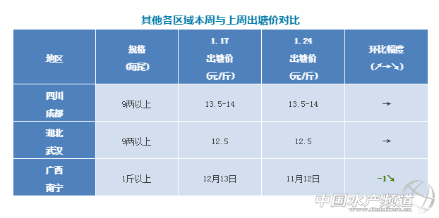 中國水產頻道獨家報道, 又一波冷空氣來臨,養戶惜售等漲! 文/圖 杰大飼料、水產前沿李靜 聯合發布 近一周,據不少浙江湖州的加州鱸養戶及商販反映,該地區最近水霉病頻發。據悉,近來湖州地區天氣溫差變化大,溫度時高時低,原本塘底底質差的魚塘,發生水霉的機率相對更大;第二出魚拉網時容易造成魚的體表受傷,進而傷口感染發生水霉病。在發病初期,有些養殖戶期望能用藥物控制病情,但最終效果還是不理想,只能以5-6元/斤的價格將魚賣掉。時值冬季,有些加州鱸或體質偏弱,在拉網時容易造成有傷口感染而發病,故建議:一、養戶盡量減少拉網次數;二、加強日常水質管理,調理好水質;三、平時注意做好魚塘消毒工作;四、做好飼養管理,提高魚的免疫力。做好以上各方面工作,減少水霉病發生的機會。 本周各地加州鱸行情 廣東順德:今天6兩上10.1元/斤,7兩上10.2-10.3元/斤,8兩上10.4元/斤。本周價錢比較穩定,順德想清塘出來育苗的養殖戶會繼續出魚,不趕著空出魚塘來標苗的養戶還在繼續等待。臨近春節,且接下來又一波冷空氣即將來臨,部分養殖戶惜售意愿明顯。 廣東南海:今天報價6兩上10元/斤,7兩上10.2-10.3元/斤,8兩上10.4元/斤,基本與上周持平。南海地區出魚一般都選擇8兩上規格,沙頭、煙南從上周開始已經很少人出魚。河清還有周邊地區,有部分魚塘到期趕著交塘,才排期出魚。 浙江湖州:今天報價8兩上12-12.5元,統貨報價10.5-11元/斤。湖州地區目前選擇賣統貨的養殖戶比較多,一是有部分發病,二是為來年的標苗做準備。但是根據天氣預報,接下來的一段時間,氣溫下降明顯得,還有可能出現降雪,所以為了避免出魚刮傷造成加州鱸魚損傷引發水霉病,估計近期養殖戶出魚會減少。 江蘇吳江:吳江新口8兩上報價為12.5元/斤,統貨報價11元/斤。鑒于目前的魚價還沒達到部分養殖戶的心理預期,另外吳江近期會出現大范圍的降溫,大部分養殖戶還是計劃到年后再出魚。 四川成都:本周報價9兩上價格13.5-14元/斤,同上周持平。現在商品魚存塘量并不大,加上水溫偏低,養殖戶出魚意愿不大。臨近消費旺季春節,預計后市價格或會有所拉升。 湖北武漢:本周9兩上報價12.5元/斤,有價無市。近期水溫偏低,為避免引起水霉病風險,出魚養殖戶極少。 廣西南寧:今天報價1斤以上價格11-12元/斤,對比上周價格基本保持穩定。受冷空氣影響,預計后市價格會略有所上漲。 其他各區域本周與上周出塘價對比 【關鍵字】:鱸魚 出塘價 水產養殖 |