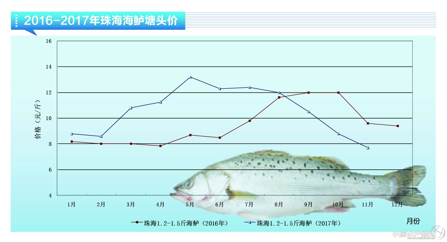 中國水產頻道獨家報道, 截至2017年11月20日各地海鱸塘頭價格: 福建莆田:1-1.2斤規格塘頭價10元/斤。 福建莆田、東山、詔安1-1.2斤規格塘頭價8.8-9.1元/斤。 廣東珠海1.2-1.25斤(頭批新鱸魚)7.2元/斤,1.25-1.3斤(頭批新鱸魚)7.2-7.3元/斤,1.3-1.4斤 (頭批新鱸魚)7.5元/斤,1.4-1.5斤(頭批新鱸魚)7.7元/斤。 福建莆田、東山、詔安區域:本月新鱸魚上市量日益增加,達上市規格魚超過90%。隨著上市鱸魚量的增加,市場價格呈持續的微下滑趨勢,行情低迷,養殖戶出魚意愿較低,持觀望態度有序出魚。 廣東珠海:現頭批魚規格普遍集中1.2-1.5斤,市場要求1.2斤規格以上才能滿足抓魚。上層消費市場淡季,供過于求,導致價格持續波動下降。接近年底結賬期,資金量緊急上升,部分客戶開始拋售性買魚籌集資金,造成了魚價波動。(彭小君) |