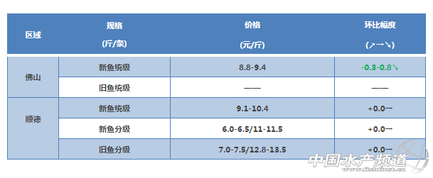 中國水產頻道獨家報道, 生魚 佛山區(qū)域:順德新魚統(tǒng)級5成9.2-9.3元,7成左右10.2-10.4元;冬棚生魚病害主要急性腸炎,出血為主。 【關鍵字】: 生魚 塘頭價 水產養(yǎng)殖 |