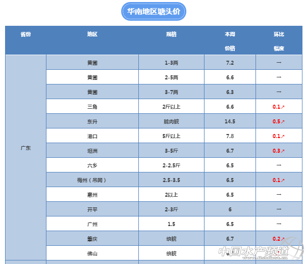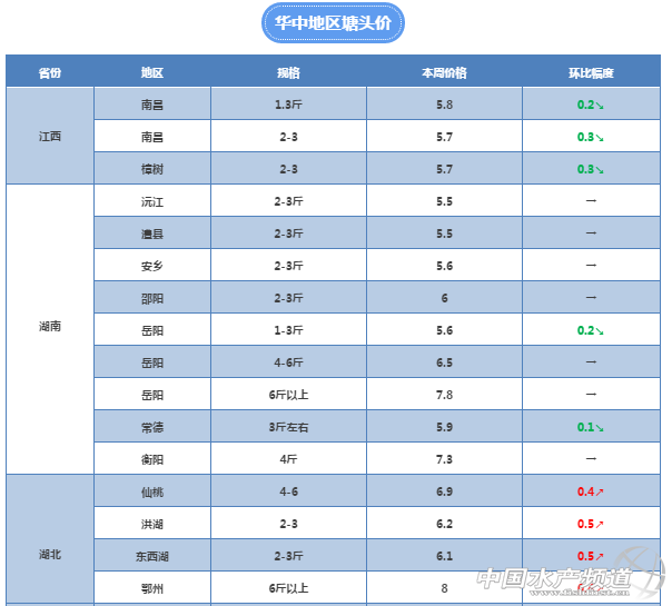 中國水產頻道獨家報道, 養得好,不如賣得好 全國草魚行情解析, 中國水產頻道與您相約每周二 文/水產前沿 鄭鵬飛 本周大部分地區的雨雪基本已經停止,隨著天氣轉晴道路更加暢通,養殖戶出魚逐漸增多。本周全國各地的草魚價格在一波瘋漲之后逐漸開始調整,部分地區價格小幅回落,其中以湖南和江西價格回調最為明顯,下調幅度在0.3元左右。其他地區以穩定為主,部分地區仍有明顯上漲。據了解,廣東地區缺魚導致部分地區草魚價格大幅上漲,其中江門地區5斤以上大草魚最高上漲0.9元。中山脆肉鯇隨著存塘魚的減少價格進一步上漲,目前14斤的脆肉鯇已經賣到14.5元/斤的高價,再次上漲0.5元。 大部分養殖戶對后期草魚行情仍然充滿信心,預計本輪小幅震蕩之后,到年前仍會有一波上漲。據統計,2017年全國網箱拆除至少減少了10億斤魚的產量,福建減少約2億斤,湖北4.7億斤,其中草魚的比例最大。2017年統鯇最高也就6.5元/斤,全年平均價格在5.7元/斤左右。而目前廣東大部分地區統鯇價格已經漲到6.5元了,超市鯇1.3斤就開始抓,市場缺魚明顯。有養殖戶表示,后市部分地區超市鯇和統鯇價格甚至有可能漲到7元/斤以上。 華南地區 中山:隨著存塘魚的減少,脆肉鯇本周價格再次攀升,目前14斤的脆肉鯇已經賣到14.5元/斤,相比上周再次上漲0.5元。大草魚塘頭價8.2元/斤。目前板芙超市鯇6.2-6.3元/斤,由于水溫低沒有什么人賣魚,出魚量不大。坦洲地區目前3-5斤草魚塘頭價6.7元/斤,超市鯇6.5元/斤,大草魚7.8元/斤,普遍上漲0.3元。 廣州:有養殖戶表示,目前廣州地區草魚有價無市,1.5斤的草魚塘頭價在6.5元/斤左右。 珠海:超市鯇塘頭價6.6元/斤,統鯇塘頭價6.8元/斤,3斤以上7.2元/斤,4斤以上7.6元/斤,5斤以上8元/斤。 佛山:目前佛山大草魚缺魚嚴重,6-9斤草魚幾乎沒有人賣,有價無市,2斤左右的塘頭價6元/斤。 江門:據鶴山養殖戶反映目前草魚嚴重缺貨,1.5斤以上塘頭價6元/斤,上周報價5.5-5.8元/斤,本周較上周有0.2-0.5元的上漲,3斤的7.5元/斤,較上周上漲0.7元,5斤的8元/斤,較上周上漲0.9元。 東莞:本周東莞地區草魚價格穩定,2-3斤塘頭價7.5元/斤,7-8斤的8.5元/斤。 廣西:本周廣西地區草魚價格波動很大,貴港地區有養殖戶反映2-4斤草魚本周上漲0.4元,塘頭價6元/斤,網箱已經漲到6.3元/斤,由于漲價就是這兩天的事,所以目前還有地區價格沒有變化,有貴港養殖戶報價仍停留在上周5.6元的水平,預計很快也會上漲。桂林地區仍有0.2元的上漲,目前3斤的草魚塘頭價6元/斤。 華中地區 湖南:由于近期湖南天氣轉好,賣魚的養殖戶增多,本周湖南部分地區的草魚塘頭價出現小幅下滑。其中,常德地區1.5斤以上的5.6元/斤,3斤左右的5.9元/斤;津市周邊2斤的草魚5.4元/斤,3斤的5.8元/斤;岳陽地區的塘頭價格目前穩定,1-3斤塘頭價5.6元/斤,6斤以上的7.8元/斤;益陽地區2斤左右草魚塘頭價5.6元/斤,養殖戶惜售,目前出魚并不多,小規格草魚價格較上周有0.2元的下滑;有湘陰的養殖戶表示,目前2兩一下的鯽魚苗出現滯銷。關于年前的魚價,有業內人士表示,魚價仍會有小幅上漲,隨著賣魚的增多年后魚價可能會有所下滑,到4月份以后會再次上漲。 湖北:本周湖北地區草魚塘頭價格再次出現上漲,最高上漲0.5元。目前2-3斤草魚塘頭價6.1-6.2元/斤,6斤以上大草魚8元/斤。有業內人士表示,目前價格已經處于高位,近期繼續上漲可能性不大。隨著天氣轉晴,湖北這幾天外地水車的數量明顯增多。據了解,白沙洲水產市場的淡水魚銷量目前已恢復到了600萬斤左右。小草魚漲兩毛,6斤以上大草魚暴漲7毛。 江西:由于江西地區草魚存塘較大,隨著天氣轉好賣魚增多,本周2-3斤草魚價格有幾毛錢的下滑,大草魚穩定。目前宜春1.5斤左右的塘頭價5.8元/斤,4斤以上6.2元/斤。 河南:目前河南草魚價格維持上周水平,4斤左右的塘頭價6.5元/斤。 華東地區 江蘇:目前,江蘇地區仍然是寒風刺骨,養殖戶表示今天湖面很多都是封凍狀態,草魚價格維持在上周水平。其中,泰州4斤塘頭價5.7元/斤,徐州3斤的網箱草魚價格6.6元/斤。 福建:本周福建部分地區草魚價格仍有0.2元的上漲,目前大部分地區2.5斤-3.5斤的網箱草魚價格6.5元/斤。 安徽:目前安徽淮南6斤以上大草魚報價/8元/斤。 浙江:本周浙江地區草魚價格仍有小幅上漲,衢州3斤草魚本周上漲0.2元,目前塘頭價6.2元/斤。據養殖戶反映,近期草魚苗種比較緊張。 其他地區 天津:據了解,本周天津地區草魚價格維持穩定,但是小草魚漲了2-3毛,鯉魚漲了1-2毛,鯽魚價格有大幅上漲。 重慶:目前重慶地區草魚價格有小幅下滑,據銅梁養殖表示,目前2-3斤草魚塘頭價5.7元/斤。 河北:河北地區目前草魚銷量不大,價格繼續有0.2-0.3元的上漲,目前保定地區3-5斤草魚塘頭價6.9元/斤,上漲0.2元;唐山地區2斤草魚塘頭價5.5元/斤,較上周有0.3元的上漲。 四川:從水產流通方面了解到,近期四川成都地區草魚塘頭價相對穩定,但是市場批發價出現下滑。前段時間的漲價主要是由于下雪交通不好,最近天氣轉好,路通了之后價格就開始出現下滑。有流通商表示,前天(5月4日)3斤左右的草魚5.8元裝車到批發市場6.2元,沒有賺到錢。近期湖南、湖北、江蘇拉往四川的魚車比較多,這也是最近價格回落的主要原因。成都當地每年3-6月是魚市青黃不接的時候,也是草魚價格的高峰期。由于本地的草魚是缺魚的,隨著年關市場消費量的增加,預計年底價格還會上漲,但