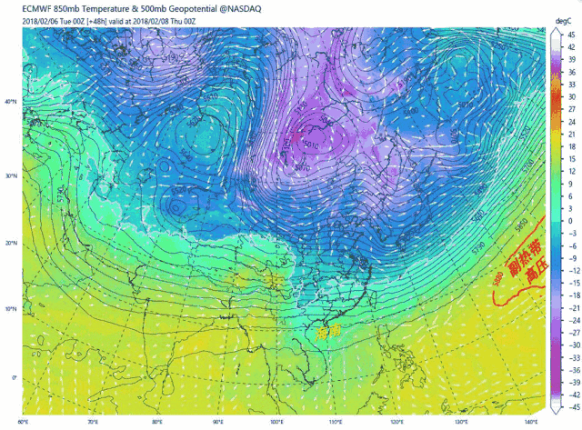 2月8-12號副熱帶高壓西伸形勢,中國氣象愛好者根據ECMWF公開數據制作