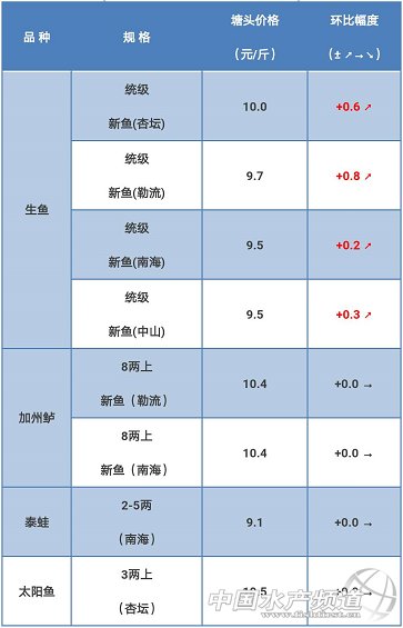 摘要: 杏壇區域:生魚新魚統級2斤上5成左右,9.5—10元。6成上大魚統級10-10.5元。新魚分級,兩斤上:12.5塊左右,兩斤下6.8塊左右。臨近春節,生魚消費需求旺盛,帶動塘頭價繼續上揚,發價視乎魚中手中訂魚情況而定。手里缺 ...
