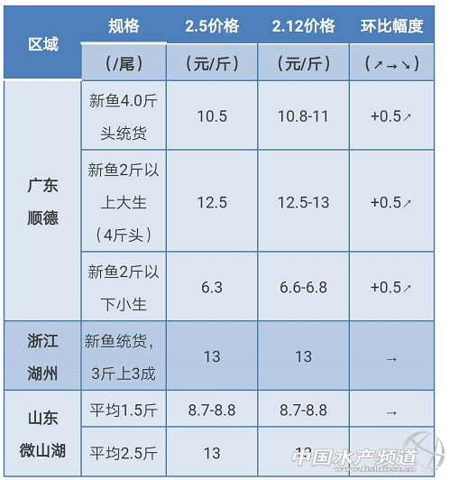 文/圖 何氏水產(chǎn)、中國水產(chǎn)頻道 李靜 中國水產(chǎn)頻道原創(chuàng)報道,1.今年廣東生魚價格一路飆升,是生魚的大豐收年。老魚結(jié)束后,新魚價格在高位運行的情況下再次飆升,新大生4斤魚頭的價格11元/斤,再次飆升了0.5元/斤;新魚2斤以上價格12.5-13元/斤,飆升了0.5元/斤;新魚2斤以下的價格也再次飆升了0.5元/斤,價格為6.8元/斤。 2.其他地區(qū)的價格變化不大。 備注:生魚因魚頭大小導(dǎo)致成交價格會有一定幅度波動 |