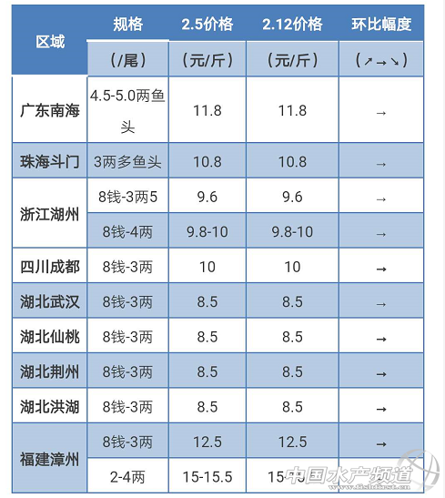 文/圖 何氏水產(chǎn)、中國(guó)水產(chǎn)頻道 李靜 中國(guó)水產(chǎn)頻道原創(chuàng)報(bào)道,1.黃顙魚的價(jià)格與上周持平,4-5兩魚頭的價(jià)格為11.8元/斤,3.7兩左右魚頭為10.8元左右/斤。開(kāi)塘依然是按魚頭大小定價(jià)格,年關(guān)和新年期間,價(jià)格波動(dòng)主要來(lái)自人工費(fèi)用的增加。預(yù)估下周行情變動(dòng)不大。 2.其他地區(qū)的價(jià)格與上周持平。 備注:黃顙魚因魚頭大小與3兩上大骨所占的具體比例導(dǎo)致成交價(jià)格會(huì)有一定幅度波動(dòng) |