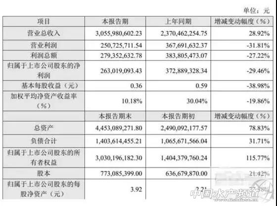 中國水產頻道獨家報道, 2017年業績快報搶先看,幾家歡喜幾家憂 編輯/水產前沿李釩 2017年已過,畜牧行業上市公司也陸續公布上一年度業績快報,2017年,誰賺誰虧,增長點在哪,增長的原因又是什么?下面讓我們先一睹為快。 海大集團:2017年營收329.5億元,同比上漲21.21% 海大集團2017年營收329.5億元,同比上漲21.21%;歸屬上市公司股東的凈利潤12億,同比上漲40.38%。報告期內,公司實現飼料銷量849萬噸,同比增長15.83%,且產品結構持續優化,產品毛利率有顯著提升。 公告指出,海大集團業績持續增長主要基于公司清晰的戰略目標、完善的服務體系、領先的技術優勢、快速聯動的管理體系,及以此為基礎形成的產品競爭力優勢。報告期,公司在遭遇禽流感、養殖環保政策、及消費升級對行業的沖擊影響,適時調整產品結構,聚焦養殖戶需求并提供高性價比的產品,依靠產品競爭力優勢在提高養殖戶盈利同時,也實現了公司產品銷量、利潤和市場占有率的快速增長。 海大集團董事長薛華在2月9日接受本刊采訪時表示,2017年海大飼料業務增長動力強勁,水產料、豬料提速亮眼,2018年豬料是重點,未來五年內海大沖刺2000萬噸飼料銷量,也就是說每年增長要超200萬噸。 海大集團2017年度主要財務數據和指標 大北農:2017年收入187.41億元,賺了12.54億元 2月26日,大北農發布2017年業績快報,報告期內,公司實現營收187.4億元,同比上漲11.29%;營業利潤15.65億元,比上年同期增長52.01%,利潤總額15.57億元,比上年同期增長39.27%,歸屬于上市公司股東的凈利潤12.54億元,比上年同期增長42.07%,基本每股收益0.3058元,比上年同期增長42.03%。 公告指出,報告期內大北農營業利潤同比增長52.01%,主要原因是:1、公司繼續優化產品結構,加大對高端高檔產品的推廣力度,銷量增長帶動毛利額相應增加;2、公司繼續貫徹降費增效策略,期間費用率水平同比下降;3、公司轉讓股權確認的投資收益同比增加;4、根據財政部新修訂的《企業會計準則第16號——政府補助》及《一般企業財務報表格式》的要求,與日常經營相關的政府補助,按照經濟業務實質,從利潤表中的“營業外收入”項目調整到利潤表中屬于營業利潤的組成項目“其他收益”中列報。 與此同時,大北農利潤總額、歸屬于上市公司股東的凈利潤和基本每股收益同比分別增長39.27%、42.07%和42.03%,主要系公司營業利潤增加所致。報告期末,公司財務狀況良好,總資產191.78億元,比年初數增長25.69%,歸屬于上市公司股東的所有者權益101.31億元,比年初數增長9.52%,。歸屬于上市公司股東的每股凈資產2.39元,比年初數增長5.85%。 大北農2017業績快報 天邦股份:2017年營收30.6億元,同比上漲28.92% 2018年2月12日,天邦股份發布了2017年度業績快報。快報顯示,公司2017年營收30.6億元,同比上漲28.92%;歸屬上市公司股東的凈利潤2.63億,同比下降29.46%。 雖然公司營收增加,但是利潤卻下滑,天邦在公告中表示,由于2017年度整體生豬市場價格較2016年有所下滑,再加上公司旗下的生豬產業中,生豬養殖成本的下降幅度比市場價格下降的幅度小,因此整體利潤比2016年有所下滑。另外,據天邦股份在2018年1月24日公布的《2018年1月18日投資者調研接待記錄表》,目前天邦漢世偉的養殖成本正逐漸下降,2018年度將實現11.7元/公斤的全成本目標。 天邦在飼料疫苗業務穩中有升,食品全產業鏈逐步完善。飼料方面,公司聚焦特種水產業務,對蝦苗種-飼料產業鏈分工協同得到理順,形成了“海茂普利茂+天邦/七好全熟料”雙全盈利模式。疫苗方面,公司藍耳、偽狂等新產品穩步推進,收購中國動保20.4%股權進一步豐富豬類、禽類疫苗產品儲備,疫苗業務競爭力有效提升。公司積極布局下游食品端,目前拾分味道終端店超過70家,未來市場拓展有望加速。 天邦2017業績快報 天馬科技:2017年凈利9151萬,同比增長13.98% 1月8日,天馬科技發布業績快報,公司2017年全年實現營業收入11.63億元,同比增長37.84%,農產品加工行業平均營業收入增長率為21.54%;歸屬于上市公司股東的凈利潤9151.47萬元,同比增長13.98%,農產品加工行業平均凈利潤增長率為12.72%。 溫氏股份:營收556.6億元,利潤總額70.9億元 2月26日,溫氏股份公布了其2017年業績快報。從業績快報中了解到,2017年溫氏股份營業收入達556.6億元,同比下降6.23%;利潤總額70.9億元,同比下跌42.66%。 報告期內,公司歸屬于上市公司股東的凈利潤同比下降42.58%、基本每股收益同比下降42.58%,主要原因是:(1)受市場供求關系變化的影響,公司商品肉豬銷售價格同比下降18.59%,雖然公司養豬業務繼續保持穩步發展,商品肉豬銷量同比增長11.18%,銷售均重同比增加3.65公斤/頭,但不足以抵消銷售均價下降的影響,導致公司商品肉豬盈利水平同比大幅下降。(2)報告期上半年,活禽產品市場行情整體持續低迷,公司養雞業務受到嚴重沖擊,商品肉雞銷售價格同比下降30.19%,養雞業經營業績同比由盈利轉為虧損。但報告期下半年,隨著H7N9事件影響的消退及市場供求關系的變化,公司肉雞銷售價格快速上漲,養雞業務經營業績全面好轉,盈利水平大幅提升,行業回歸正常軌道,公司養雞業務報告期內整體實現盈利。 正邦集團:2017年凈利5.28億,同比下降49.55% 2月26日,正邦科技發布業績快報,公司2017年1-12月實現營業收入205.71億元,同比增長8.72%,農產品加工行業平均營業收入增長率為21.54%;歸屬于上市公司股東的凈利潤5.28億元,同比