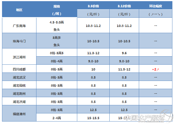 (備注:黃顙魚因魚頭大小與3兩上大骨所占的具體比例導致成交價格會有一定幅度的波動)