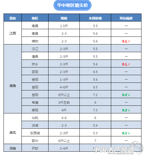 中國水產頻道獨家報道, 養得好,不如賣得好 全國草魚行情解析, 中國水產頻道與您相約每周二 文/圖 水產前沿 鄭鵬飛 今日關注 1、江西南昌養殖戶表示,從湖北進的草魚苗剛一個星期,打完針后出現死魚,目前已經死亡接近10000尾,旁邊養殖戶的魚塘同樣的苗已經幾乎全軍覆沒,本地的苗卻很少有這么大死亡量,求高手指點! 2、山東萊州地區草魚養殖戶表示,近期草魚苗種水霉病比較嚴重!了解到目前山東河北很多地區仍在下雪,建議低溫期放苗操作盡量輕柔,最好是帶水下塘,盡量避免刮傷魚體和粘液,同時做好消毒和肥水。 武漢艷陽高照的魚塘 今日行情 本周全國大部分地區草魚行情基本穩定,其中華南地區有小幅下滑,華中地區價格穩定但消費疲軟,北方地區有上漲趨勢,華東地區有小幅上漲。雖然節后消費市場出現疲軟,但是目前整體行情沒有出現較大波動。穩定的行情才有利于行業的良性發展的,避免了高行情的投機行為和低行情對養殖戶的打擊。用一位飼料企業老總曾經說過的一句話:太好和太差的行情對行業和養殖戶都是一種傷害,最好的行情就是穩定的行情。 華南地區 中山:本周中山超市魚6.2元/斤,有1-2毛的下滑,大草魚下跌2-3毛,交易量不大,養殖戶處于觀望中。苗種存塘少,價格有小幅下滑,目前黃圃草魚苗種1-3兩的7元/斤,2-5兩的6.6元/斤,3-7兩的6.2元/斤。有魚中表示,近期草魚苗種仍有下滑跡象。坦洲經銷商表示,近期當地該出的魚都出了,存塘不多,目前魚價回落一方面是過完年消費市場差,其次是該進魚的魚塘都進魚了,放苗需求減少。 廣州:據海鷗島養殖戶反映,目前2斤左右草魚塘頭報價6.2元/斤,價格有小幅回落。南沙某大型養殖企業了解到目前的統鯇報價為6.3元/斤。佛山、江門、梅州、肇慶等地區本周價格穩定在上周水平。 東莞:本周東莞草魚價格有漲有跌,目前養殖戶塘頭報價為7-7.5元/斤。 廣西:廣西地區本周草魚行情基本穩定,沒有波動。大部分地區3斤左右的草魚塘頭價在6.1-6.4元/斤,萬峰湖地區目前3斤以上的草魚塘頭價6.8元/斤。 華中地區 江西:目前江西樟樹地區3斤一下的草魚塘頭價5.6元/斤,較上周有0.1元的上漲,3斤以上的5.8元/斤,南昌地區草魚價格維持上周不變。 湖南:據最新了解,本周湖南地區草魚價格穩定,沒有出現波動。其中,湖南永州6.5-7元/斤,湖南益陽地區草魚價格穩定在5.5-5.7元/斤。西洞庭地區目前塘頭價5.6-5.7元/斤。 湖北:本周湖北地區草魚價格基本穩定,價格維持上周水平,但是銷量仍是不大。據湖北流通商介紹,目前消費市場疲軟的其中一個原因是:目前屬于高魚價,小商販的利潤空間小,暫養風險大,所以拿貨量比較少,今年當地的草魚銷量只有去年同期的30%。 華東地區 福建:最新了解到,目前福建南平目前網箱草魚塘頭價格6.3-6.4元/斤,饒平地區8斤以上的草魚8-8.1元/斤,興寧3斤左右的6.5元/斤,揭陽地區3斤的6.8元/斤,豐順3-5斤草魚7元/斤。 浙江:據業內人士反映,本周浙江地區草魚有小幅上漲,目前塘頭價6.3元/斤,但目前收魚的不多,銷量不大。 安徽:本周安徽池州地區小草魚塘頭價6.2元/斤,2斤左右的5.6-5.9元/斤,4斤以上的6.5元/斤,大草魚7元/斤,近期以本地消費為主,價格相對平穩。 其他地區 四川:本周四川地區草魚價格整體保持平穩,部分地區有小幅下滑。其中,成都地區目前塘頭價5.9元/斤,下滑0.1元。 遼寧:沈陽地區平均5斤的草魚塘頭報價6.4元/斤。有養殖戶表示,雖然塘頭價6.4元/斤,但實際上目前市場上很少有魚賣,近期主要是病魚影響了價格上漲,預計半個月左右草魚價格會有所上漲。 陜西:據了解,由于出魚渠道不同價格存在一定的差異。陜西漢中地區草魚大多往四川供魚,近期價格有所下滑,從上周的6.5元/斤下滑到6元/斤,下滑了0.5元,而往西安陜北方向目前價格穩定在6.8元/斤。 【關鍵字】: 草魚 塘頭價 水產養殖 |