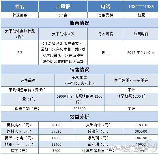 中國(guó)水產(chǎn)頻道獨(dú)家報(bào)道, 近年來隨著大母本蟹苗的逐漸受到認(rèn)可,市場(chǎng)上刮起一股大母本蟹苗的熱風(fēng)。金鳳根憑借著自己多年的經(jīng)驗(yàn),培育出的大母本蟹苗大受歡迎,周邊的養(yǎng)殖戶紛紛效仿,他到底有何秘訣? 文/圖 天邦食品股份有限公司 滬蘇州 裘立杭 近年來隨著大母本蟹苗的逐漸受到認(rèn)可,市場(chǎng)上刮起一股大母本蟹苗的熱風(fēng),尤其是在全國(guó)成蟹品牌效應(yīng)最好的環(huán)陽澄湖地區(qū),大母本蟹苗的需求量非常大。 據(jù)筆者統(tǒng)計(jì),目前搞大母本蟹苗的背景各自不同,有以政府機(jī)構(gòu)為背景的“長(zhǎng)江一號(hào)、二號(hào)”(江蘇省淡水所),以院校為背景的“江海21”(上海海洋大學(xué)),以公司為背景的“諾亞一號(hào)”(諾亞方舟公司),還有數(shù)量眾多的私人培育的大母本苗種等等。而我們今天故事的主角,和以上都有不同,屬于私人與政府機(jī)關(guān)單位合作培育大母本蟹苗的范本。 金鳳根是常熟辛莊的養(yǎng)殖大戶,憑借著自己多年養(yǎng)殖的實(shí)踐,金老板很早就意識(shí)到了優(yōu)良的母種對(duì)于養(yǎng)殖的重要性,慢慢就有了培育大母本蟹苗的想法。再加上周圍很多養(yǎng)殖大戶也都對(duì)金老板信得過,希望金老板來牽頭做大母本蟹苗,金老板于是下定決心要把大母本蟹苗培育成功。 政企通力合作培育大母本蟹苗 和常熟本地很多私人作坊式的大母本蟹苗不同,金老板的思路非常清晰,他一開始就認(rèn)為做苗種一定要和政府單位合作,才能經(jīng)營(yíng)地規(guī)范和長(zhǎng)遠(yuǎn)。純粹私人經(jīng)營(yíng)的蟹苗,由于沒有人監(jiān)督,品質(zhì)難以保證,養(yǎng)殖戶也很難信服。恰好常熟市水產(chǎn)站也希望培育一個(gè)大母本蟹苗來服務(wù)常熟本地養(yǎng)殖戶,于是金老板和江蘇省淡水水產(chǎn)研究所、常熟市水產(chǎn)技術(shù)推廣站以及射陽縣朱平水產(chǎn)苗種有限公司合作,由以上單位監(jiān)督和掛牌,在如東建立了河蟹新品種大規(guī)格親本繁育基地。2017年基地產(chǎn)大眼幼體900多斤,2017年12月9日,江蘇省淡水所潘建林所長(zhǎng)和射陽縣朱平水產(chǎn)苗種有限公司董事長(zhǎng)朱平先生,在常熟市水產(chǎn)站組織的常熟養(yǎng)殖戶代表40多人的見證下,對(duì)基地的公母本隨機(jī)抽查過秤:母本平均5.44兩,公本平均7.24兩。預(yù)計(jì)今年可繁育大眼幼體3000斤以上。 合作建立的如東河蟹新品種大規(guī)格親本繁育基地牌匾 只有好飼料才能養(yǎng)出好扣蟹 解決了大眼幼體的問題,接下來就要解決大眼幼體培育成扣蟹的問題,以往很多養(yǎng)殖戶使用低檔次的飼料投喂扣蟹,養(yǎng)出的扣蟹雖然有的時(shí)候也有產(chǎn)量,但是質(zhì)量卻不好,小蟹空有殼子,里面卻沒有太多肉,有的甚至因?yàn)槌缘奶钪苯訐p害了肝胰腺(肝胰腺發(fā)白),這種劣質(zhì)扣蟹在次年的頭一兩殼脫殼成功率很低,有些直接就發(fā)展成了水癟子蟹,給養(yǎng)殖戶在成蟹養(yǎng)殖階段造成了很大損失。 好馬配好鞍,金老板決定一定要用市場(chǎng)上檔次最好的飼料喂自己的扣蟹。恰巧天邦公司在常熟任陽的大經(jīng)銷商曹衛(wèi)清在任陽推廣全程天邦全熟化超苗料+長(zhǎng)江系列苗種,在扣蟹養(yǎng)殖以及后續(xù)的成蟹養(yǎng)殖中均取得了很好的反響,金老板和曹老板又是老相識(shí),于是由曹老板牽線搭橋,金老板和天邦公司接洽后,雙方一拍即合,金老板決定不僅自己的扣蟹在2017年使用天邦超苗料,還發(fā)動(dòng)自己周圍的養(yǎng)殖戶成蟹也試用全熟化料。 金鳳根早早就意識(shí)到好飼料對(duì)培育扣蟹重要性 金老板一用上天邦超苗料,立刻發(fā)現(xiàn)了天邦超苗料的兩個(gè)過人之處:第一是無粉塵,適口性好。尤其是在高溫天的時(shí)候,金老板比較后發(fā)現(xiàn),比起前幾年用硬顆粒料時(shí),小蟹吃天邦料的吃食量更大。第二是水質(zhì)容易調(diào)控。雖然吃食量比起以前上升不少,2017年又遇到了罕見的高溫,但是塘口的水質(zhì)卻容易管理,很少起藍(lán)藻。 金老板在塘口起扣蟹 好苗加好料,扣蟹畝產(chǎn)值達(dá)到20000元 等到了起螃蟹的時(shí)候,天邦超苗料更是給金老板帶來了驚喜,蟹的整體規(guī)格大且均勻,很少有百把頭左右的夾子蟹,按平均60頭規(guī)格來算,每畝產(chǎn)量足足接近350斤。更令人開心的是,來金老板處購買扣蟹的養(yǎng)殖戶發(fā)現(xiàn),全程使用超苗料的扣蟹活力強(qiáng),分量足,經(jīng)過了一個(gè)冬天,公蟹胸口仍舊全部映出紅膏,母蟹后庭仍舊飽滿,養(yǎng)殖戶們都非常滿意。金老板自己家的53畝成蟹塘放掉了1200斤扣蟹,余下的4700斤規(guī)格蟹還為金老板帶來了超18萬元的利潤(rùn)。(下附養(yǎng)殖數(shù)據(jù)) 表1 金鳳根養(yǎng)殖效益表 經(jīng)過了一個(gè)冬天,公蟹胸口仍舊全部映出紅膏 經(jīng)過了一個(gè)冬天,母蟹后庭仍舊飽滿 無獨(dú)有偶,2017年,辛莊的養(yǎng)殖大戶徐偉軍在金老板的帶動(dòng)下,8畝水面養(yǎng)殖扣蟹,畝放金老板的大眼幼體2.5斤,同時(shí)使用天邦全程超苗料,畝產(chǎn)光是50頭以上的規(guī)格蟹就達(dá)到了300斤以上。徐老板高興地說:“今年每畝用了天邦料20包多點(diǎn),加上其他成本,每畝的總成本在7000元左右。但如果把自己家里大