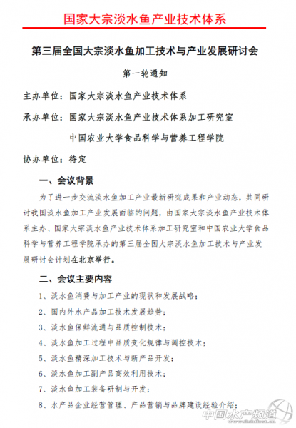 第三屆全國大宗淡水魚加工技術與產業發展研討會[北京]