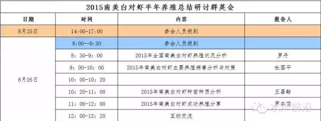 承辦單位:海南海壹水產種苗有限公司 時間:2015年8月25-26日 地點:海南·海口·金色陽光溫泉度假酒店 形式:精英論壇 規模:80人 會議日程: