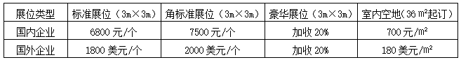 注:a.標準展位配備:洽談桌一張、折椅兩把、展位楣板、地毯、射燈兩個、220V插座一個、展位每日保潔、會刊登錄、展商證件、大會資料。