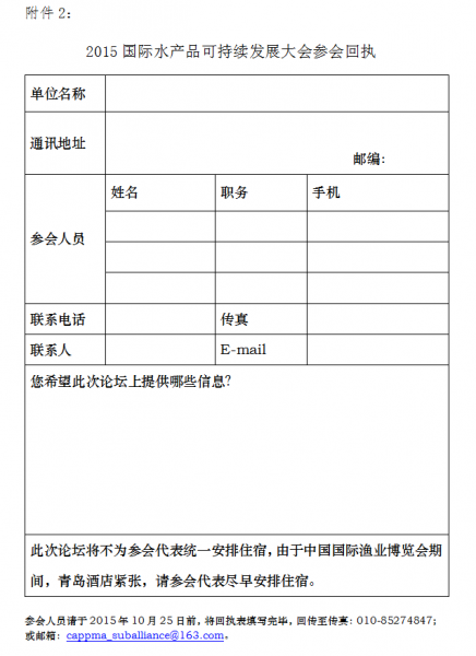 請參會人員填寫參會回執表并于2015年10月25日前傳真至我會。