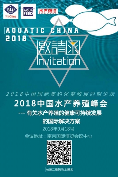 在“2018中國國際集約化畜牧展覽會 VIV China”期間將特別組織“2018中國水產(chǎn)養(yǎng)殖峰會”,重點邀請國際知名學(xué)者和水產(chǎn)養(yǎng)殖企業(yè)的一線專家,圍繞水產(chǎn)展望、精準(zhǔn)營養(yǎng)、養(yǎng)殖科技等熱點議題,分享和探討有關(guān)水產(chǎn)養(yǎng)殖的健康可持續(xù)發(fā)展的國際解決方案,誠邀您的光臨!
