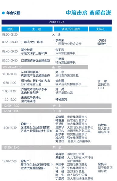 2018中國大農業營銷年會,由中國市場學會中國畜牧業協會鼎力支持,布谷聯盟主辦。大會自2012年舉辦,一年一度,已經連續成功舉辦六屆。大會致力于召集行業內最優秀的公司與企業領袖展開行業發展的深度討論與思維碰撞,匯聚價值觀點并將其轉化為可實踐的指南,打造出一個講究實戰實效的營銷盛會。 2018中國大農業營銷年會主題: 中流擊水 奮楫者進 四十年改革,長路漫漫,天翻地覆慨而慷 城與鄉,規模養殖與家庭農場 經銷商與合作社,農家樂與家庭農莊 勞動密集與智能智造,普羅大眾與個性化 自力更生與分工協作,價值、品牌無限風光 新常態、大變局,民族復興 百舸爭流,已到江心 新時期、中國夢,農業繁榮 中流擊水,奮楫者進