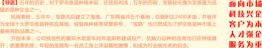 臺(tái)山寶路水產(chǎn)科技有限公司被評(píng)為廣東省級(jí)羅非魚(yú)良種場(chǎng)