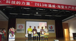 2013年5月13日、18日珠海海壹水產飼料有限公司分別在中山和珠海舉行了“科技的力量--海壹水產養殖技術論壇”, 珠海海壹總經理鄧金雁,通威股份廣東片區服務總監楊松,珠海海壹服務部經理周爭志等近千人參加會議。其中鄧總和楊總監分別針對“科技的力量”為課題進行講解,對365模式進行深入分析,周爭志經理對養殖技術、養殖成本和養殖效果進行現場分析。現場還進行了優秀養殖戶頒獎,對養殖效果較好的人員讓他們現場分享養殖心得,讓更多養殖戶能夠了解海壹、了解海壹產品。