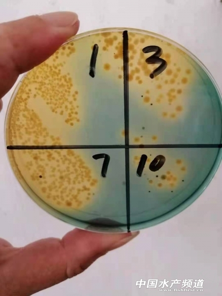 我們先來認識一下弧菌,準確來說弧菌并不特指某一種細菌,而是指眾多弧菌種類的統稱。弧菌種類有很多,如常見的哈維氏弧菌、溶藻弧菌、副溶血弧菌等。其中最具有危害性的弧菌是副溶血弧菌,其生長繁殖能力極強,毒性也最大,可在短時間內造成對蝦的大量發病和偷死。因此我們在平板檢測中非常關注副溶血弧菌(綠弧菌)的數量,甚至有幾個綠點,比大量出現黃弧菌都更緊張,其實這是我們的一個常見誤區,不管是綠弧菌還是黃弧菌,都是具有致病性的,黃弧菌數量多了依然會對對蝦的組織造成損傷,而感染弧菌也不是一時半會的,往往是通過水質環境的異常,導致的體質下降,進而被弧菌所感染發病。
