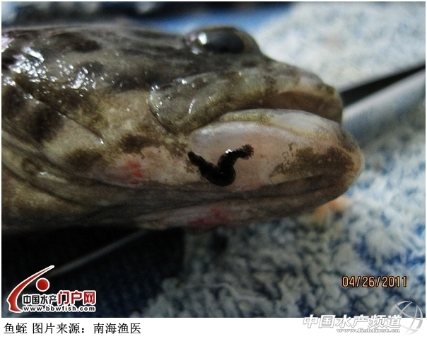 魚(yú)蛭(Piscicola)是水蛭(螞蟥)的一種,淡、海水魚(yú)中均有發(fā)現(xiàn)。蟲(chóng)體扁平細(xì)長(zhǎng),1-2cm,前后各有一個(gè)吸盤,前吸盤較小,由口部周圍肌肉形成,用來(lái)吸附于宿主以吸食血液;后吸盤較大,與前吸盤協(xié)作在宿主上爬動(dòng)。魚(yú)蛭寄生吸取血液會(huì)導(dǎo)致石斑魚(yú)貧血和呼吸困難,魚(yú)體衰弱抵抗力差。魚(yú)蛭吸飽之后便離開(kāi)尋找下一個(gè)寄主,留下的傷口又容易引發(fā)細(xì)菌性感染。對(duì)幼魚(yú)殺傷性更大。