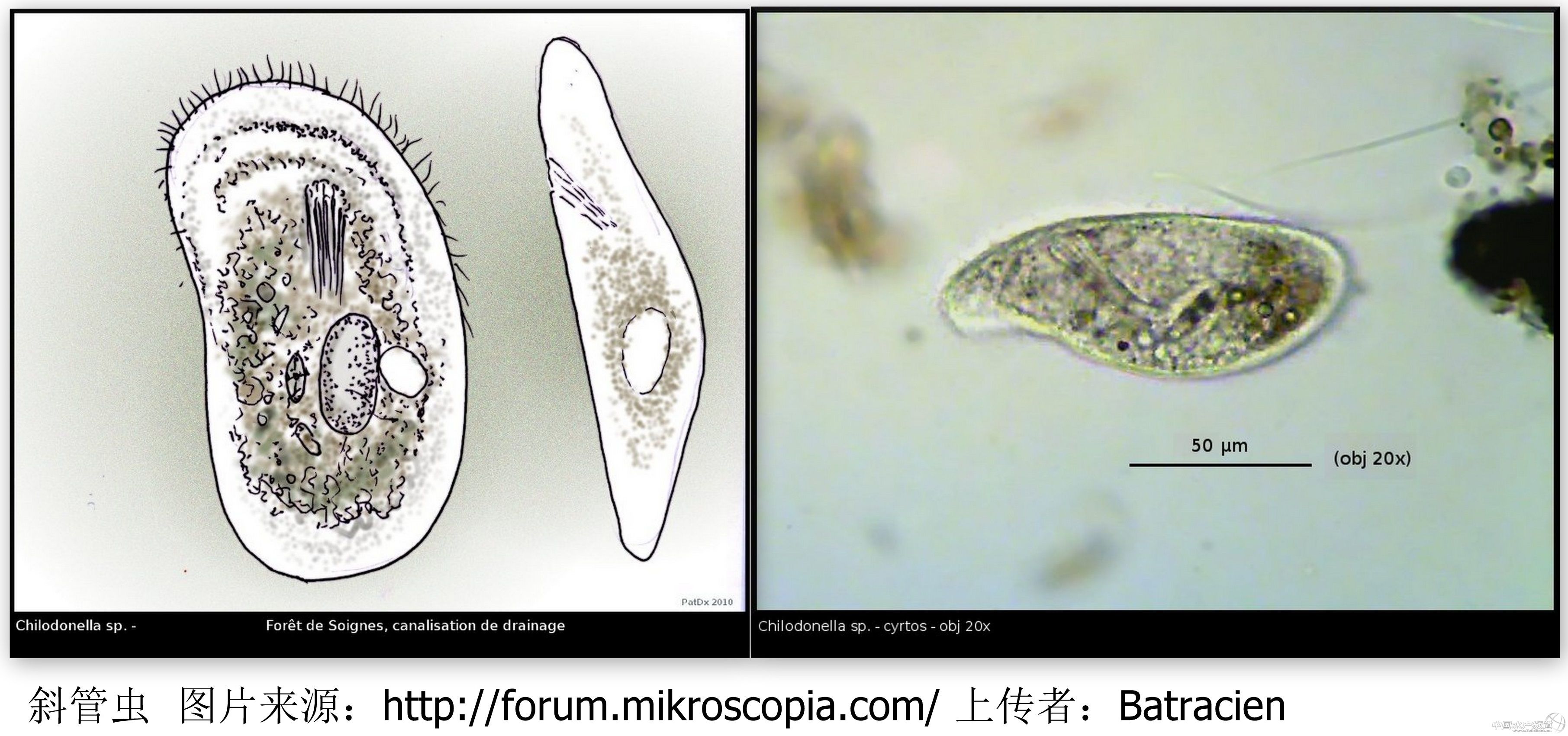 遺憾的是,我從事水產(chǎn)工作以來(lái)并沒(méi)有真正見(jiàn)過(guò)瓣體蟲(chóng),網(wǎng)上也找不到清楚的圖片,所謂瓣?duì)铙w在鏡下是什么樣?瓣體蟲(chóng)感染所造成的不規(guī)則白斑是什么樣?瓣體蟲(chóng)和斜管蟲(chóng)鏡檢下的區(qū)別在哪?這幾個(gè)問(wèn)題我實(shí)際上并不確定,還望有相關(guān)圖片的人可以分享。個(gè)人認(rèn)為在低倍鏡下瓣體蟲(chóng)和斜管蟲(chóng)應(yīng)該差不多, 以下是幾張斜管蟲(chóng)的圖片,網(wǎng)上對(duì)斜管蟲(chóng)形態(tài)的描述是:蟲(chóng)體有背腹之分,側(cè)面觀背部隆起,腹面平坦; 腹面觀近卵圓形,但左邊較直,右邊稍彎(引自水產(chǎn)百科)。