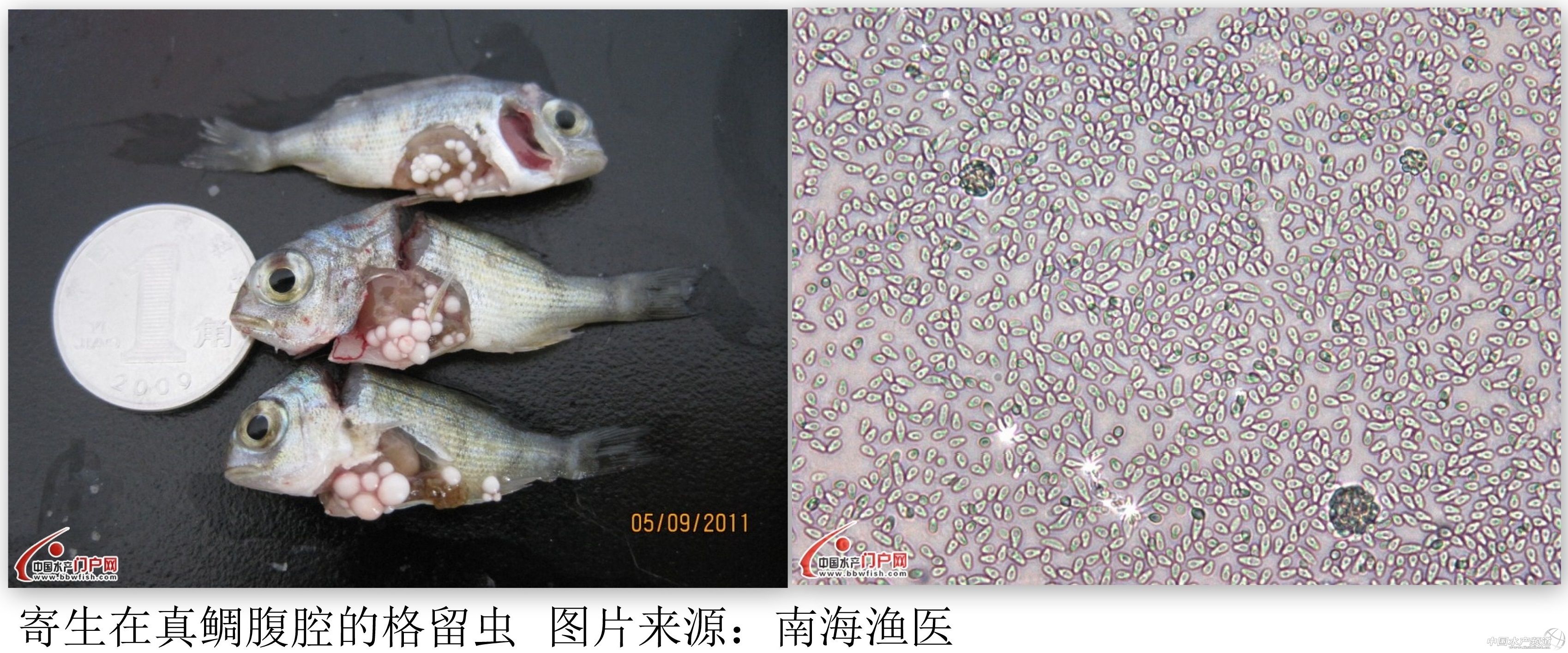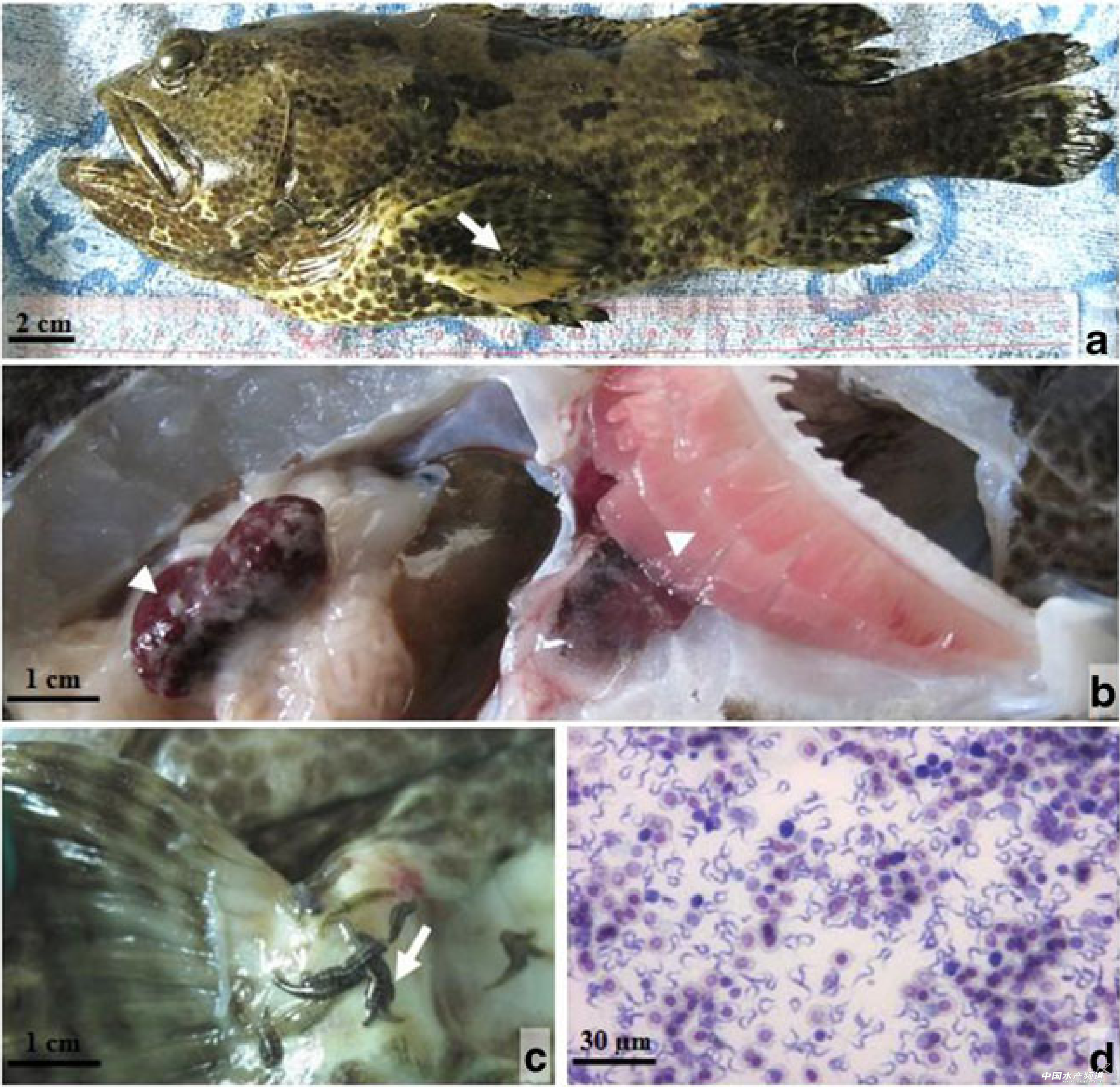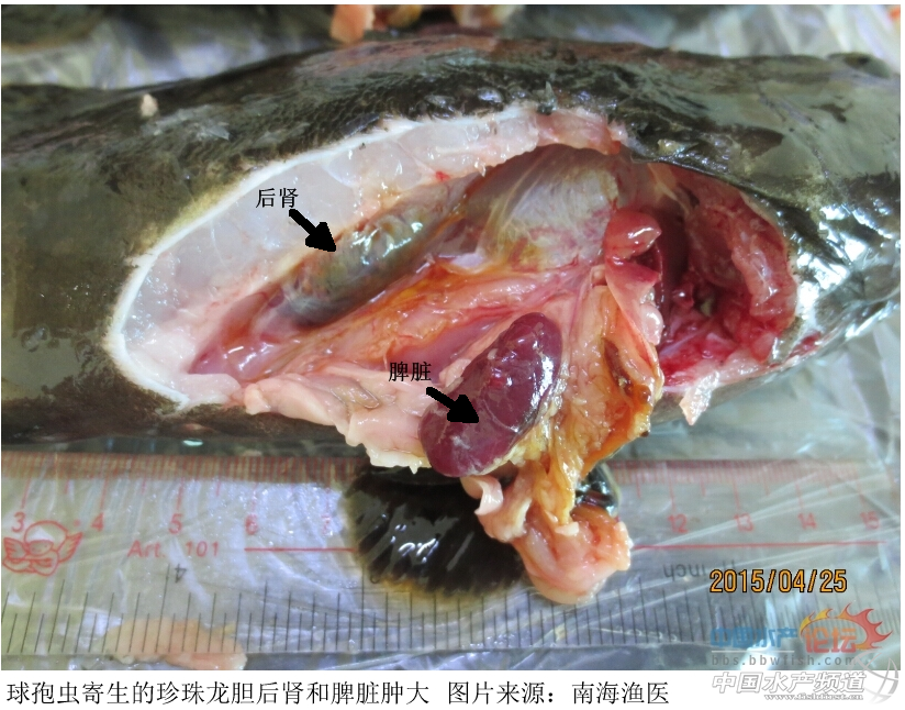 此外,南海漁醫(yī)在青斑腎小管中也發(fā)現(xiàn)了球孢蟲(chóng),同樣表現(xiàn)出后腎、脾腫大和肝臟有白色結(jié)點(diǎn)。詳見(jiàn)報(bào)道:石斑:神啦!救救我吧!!(南海漁醫(yī))
