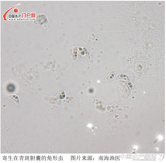 還有在膽囊還發(fā)現(xiàn)了另一種粘孢子蟲(chóng),角形蟲(chóng),危害較小。